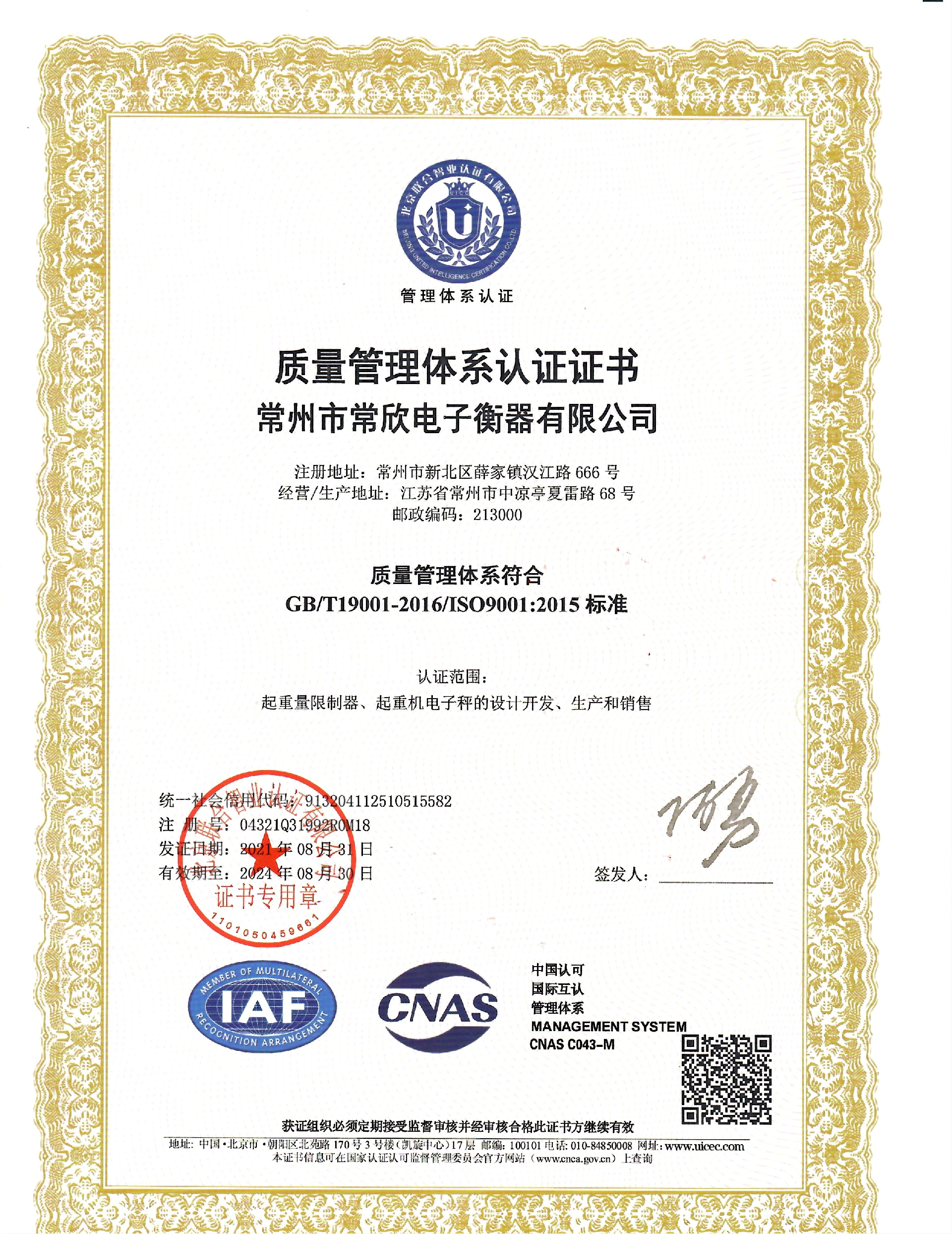 - 常州市常欣電子衡器有限公司